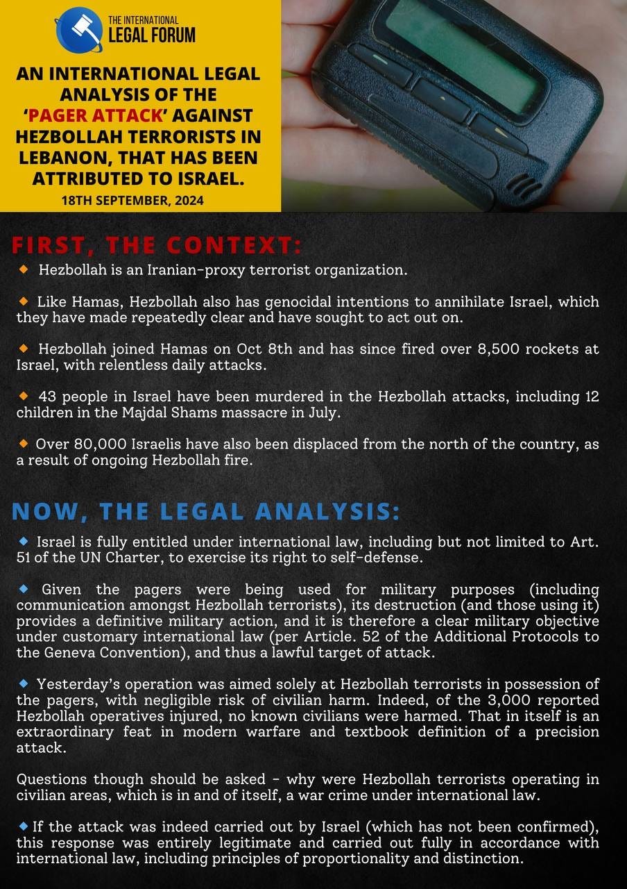 International Legal Law Peter SamuelSep 18, 202421ShareGetting a terrorist without bombs or harming people who are innocent is a good thing. Nasrallah inside his bunker